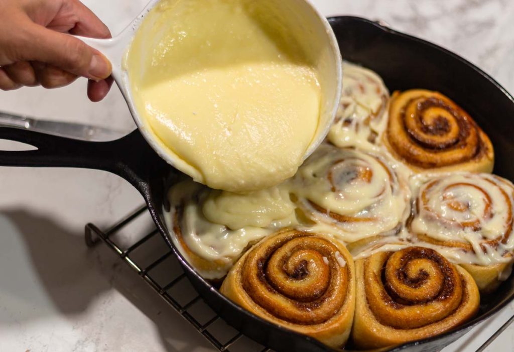 The cream cheese frosting adds more zesty, sweet; therefore, a creamy texture to the brioche cinnamon rolls.