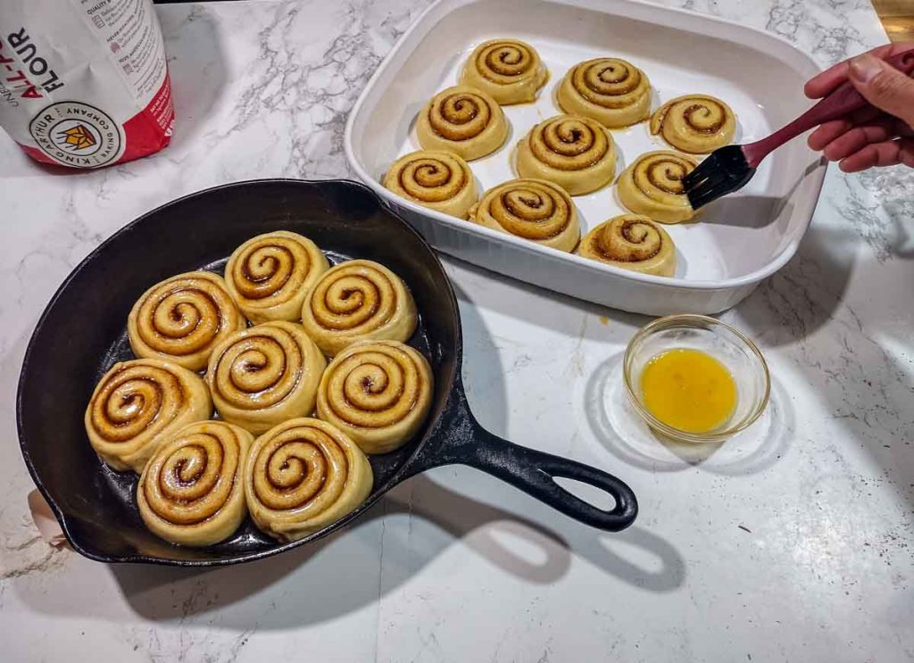 7. Arrange the rolls in the baking pan or seasoned cast iron pan.